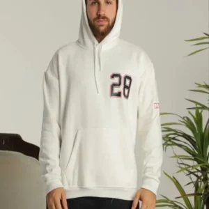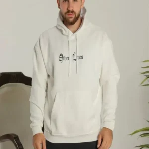 Erkek Sırt Baskılı Oversize Üç İplik Kapüşonlu Sweatshirt – Beyaz