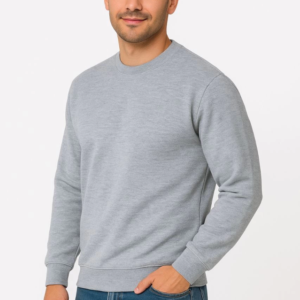Erkek Üç İplik Düz Bisiklet Yaka SweatShirt – Gri