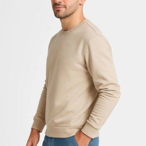 Erkek Üç İplik Düz Bisiklet Yaka SweatShirt – Bej
