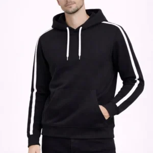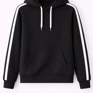Erkek Şeritli Kapüşonlu Sweatshirt Oversize 3 Iplik Pamuklu – Siyah