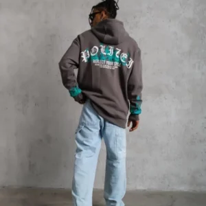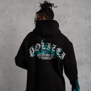 Erkek Üç İplik Kapüşonlu Ön Ve Arka Baskılı SweatShirt Hoodie – Siyah