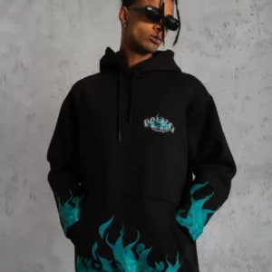 Erkek Üç İplik İçi Pamuklu Alev Baskılı Kapüşonlu Sweatshirt – Siyah