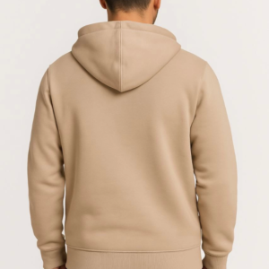 Erkek Üç İplik Kapüşonlu Tam Fermuarlı Kanguru Çepli SweatShirt Hoodie – Bej