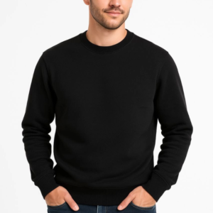 Erkek Üç İplik Düz Bisiklet Yaka SweatShirt – Siyah