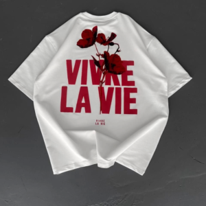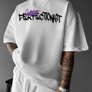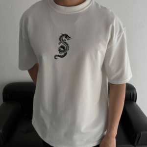 Baskılı Oversize Bisiklet Yaka T-shirt – Beyaz