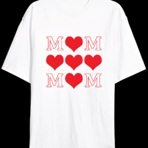 Anneler Gününe Özel Tasarım MOM Kalp Baskılı T-shirt – Beyaz
