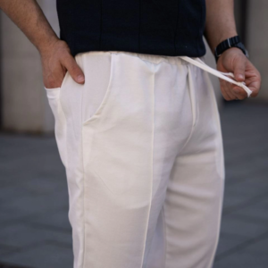 Erkek Keten Cepli Çıma Dikişli Jogger Buggy Pantalon Rahat Kalıp – Beyaz