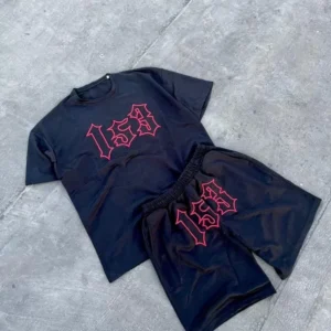 Erkek Nakış İşlemeli Şortlu Takım – Siyah