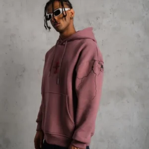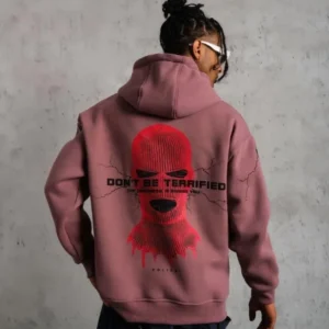 Erkek Maske Baskılı Kapüşonlu Sweat – Gül Kurusu