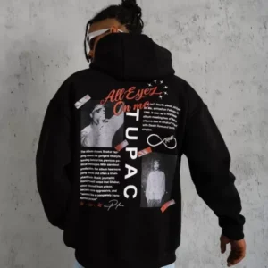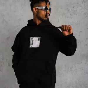 Erkek Ön Arka Baskılı Kapşonlu Sweat – Siyah
