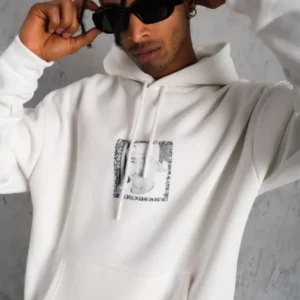 Erkek Ön Arka Baskılı Kapşonlu Sweat – Beyaz