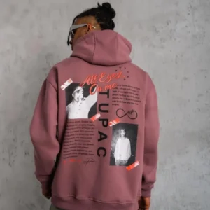 Erkek Ön Arka Baskılı Kapşonlu Sweat – Gül Kurusu