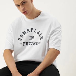 Erkek Baskılı Oversize T-shirt – Beyaz