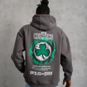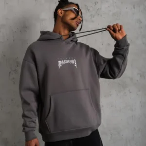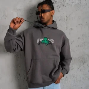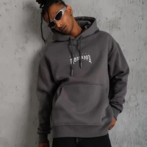 Erkek Baskılı Kapüşonlu Sweat – Gri