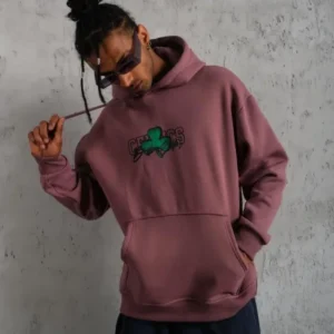 Erkek Baskılı Kapüşonlu Ve Kordon İpli Sweat – Gül Kurusu