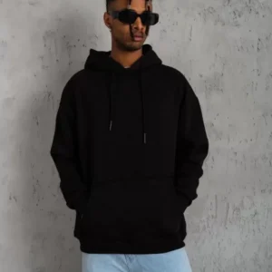 Erkek Düz Kapüşonlu Sweat – Siyah