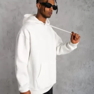 Erkek Düz Kapüşonlu Sweat – Beyaz