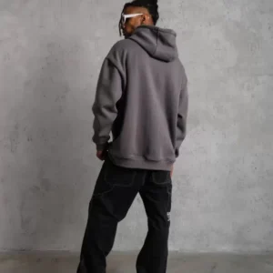 Erkek Düz Kapüşonlu Sweat – Boyalı Gri