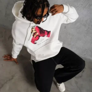 Erkek Eldiven Baskılı Kapüşonlu Sweat – Beyaz
