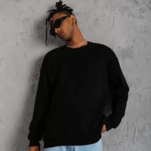 Erkek Düz Bisiklet Yaka Sweat – Siyah