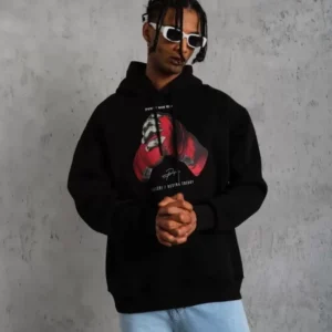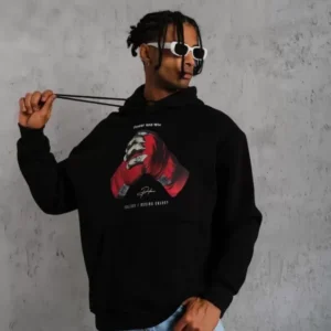 Erkek Eldiven Baskılı Kapüşonlu Sweat – Siyah