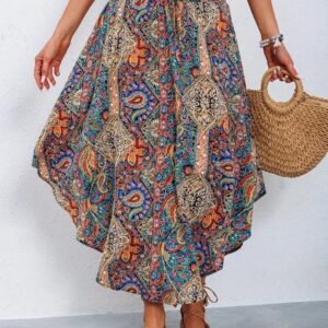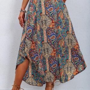 Kadın Beli Lastikli Bağcıklı Asimetrik Kesim Detaylı Desenli Bürümcük Etek