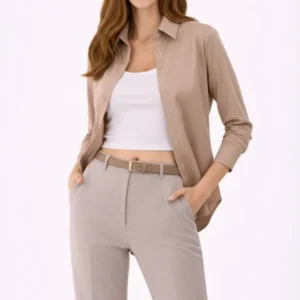 Uzun Kollu Gömlek Düğmeli Klasik Yaka Günlük Ve Ofis Şıklığına Uygun – Bej