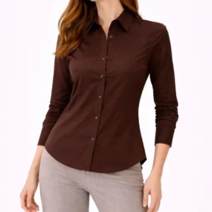 Uzun Kollu Gömlek Düğmeli Klasik Yaka Günlük Ve Ofis Şıklığına Uygun – Kahverengi