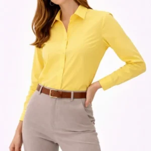 Uzun Kollu Gömlek Düğmeli Klasik Yaka Günlük Ve Ofis Şıklığına Uygun – Sarı