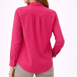 Uzun Kollu Gömlek Düğmeli Klasik Yaka Günlük Ve Ofis Şıklığına Uygun – Fuşya