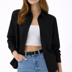 Siyah Oversize Uzun Basic Gömlek 3900