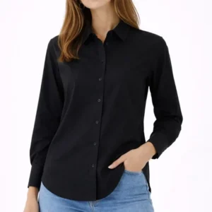 Uzun Kollu Gömlek Düğmeli Klasik Yaka Günlük Ve Ofis Şıklığına Uygun – Siyah