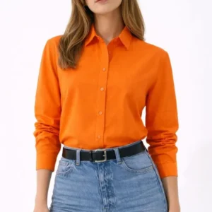 Uzun Kollu Gömlek Düğmeli Klasik Yaka Günlük Ve Ofis Şıklığına Uygun – Turuncu