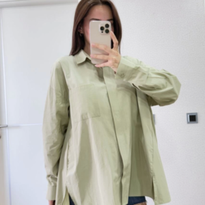 Yakalı Yandan Yırtmaçlı Gömlek – Yeşil