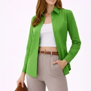 Uzun Kollu Gömlek Düğmeli Klasik Yaka Günlük Ve Ofis Şıklığına Uygun – Yeşil