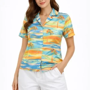 Yazlık Tropikal Desenli Gömlek Şort Takım Rahat Kalıp Tatil Kombin – Desenli