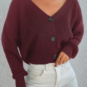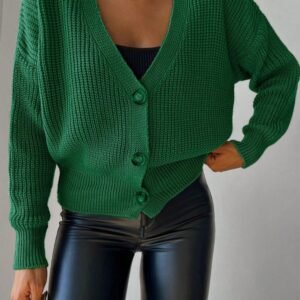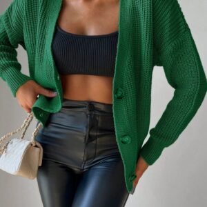 Kadın Uzun Kollu Düğme Detay Triko Hırka