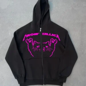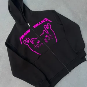 Kışlık Baskılı Fermuarlı Kapüşonlu Hırka – Siyah