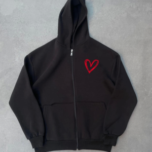Üç İplik Baskılı Fermuarlı Kapşonlu Hırka – Siyah