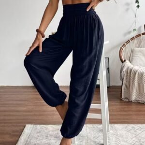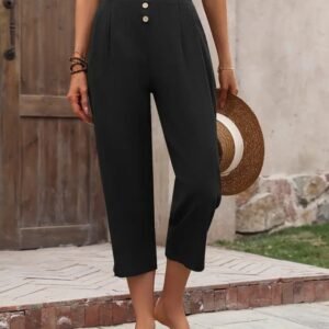 Kadın Yüksek Belli önden Düğmeli Ithal Keten Pantolon