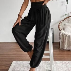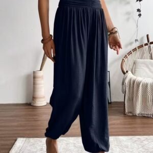 Kadın Yüksek Belli Yandan Büzgülü Paçaya Doğru Geniş Dalgıç Tayt