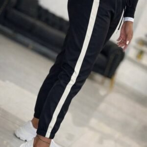 Kadın Yüksek Bel Lastikli Yan şerit Detaylı Deri Pantolon