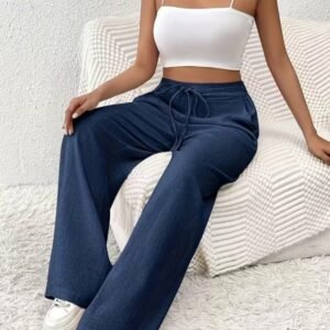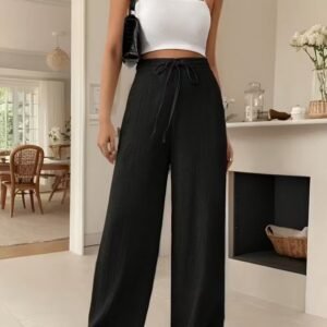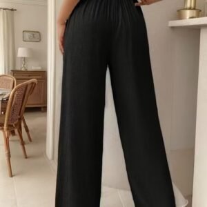 Kadın Yüksek Bel önden Bağlamalı Geniş Kesim Keten Pantolon