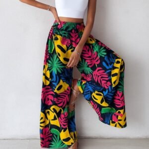 Kadın Yüksek Bel Lastikli Desenli Süprem Pantolon
