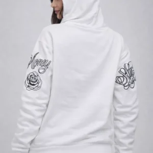 24 Sırt Baskılı Ovresize Üç İplik Kapüşonlu Sweatshirt – Beyaz