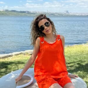 Kadın Kolsuz V Yaka Kuş Gözü Detay Bluz Short Aerobin Ikili Takım