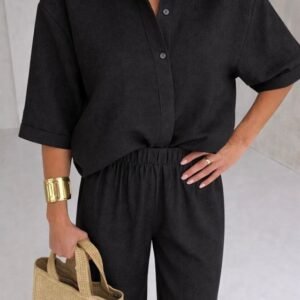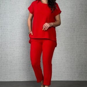 Kadın Krep Kumaş Gömlek Ve Ispanyol Paça Pantolon Ikili Takım