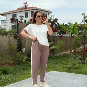 Kadın Modal Dokulu Kumaş Yanı şeritli Takım