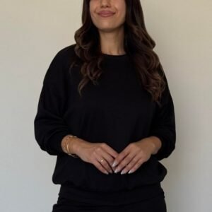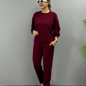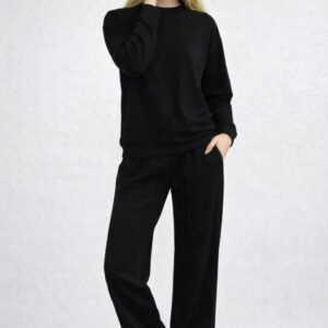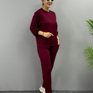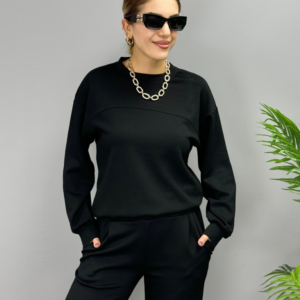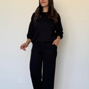 Kadın Uzun Kollu Bisiklet Yaka Viskon Iki Iplik Bluz Ve Pantolon Ikili Takım