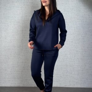 Kadın Uzun Kollu Kapşonlu Viskon Iki Iplik Bluz Ve Pantolon Ikili Takım